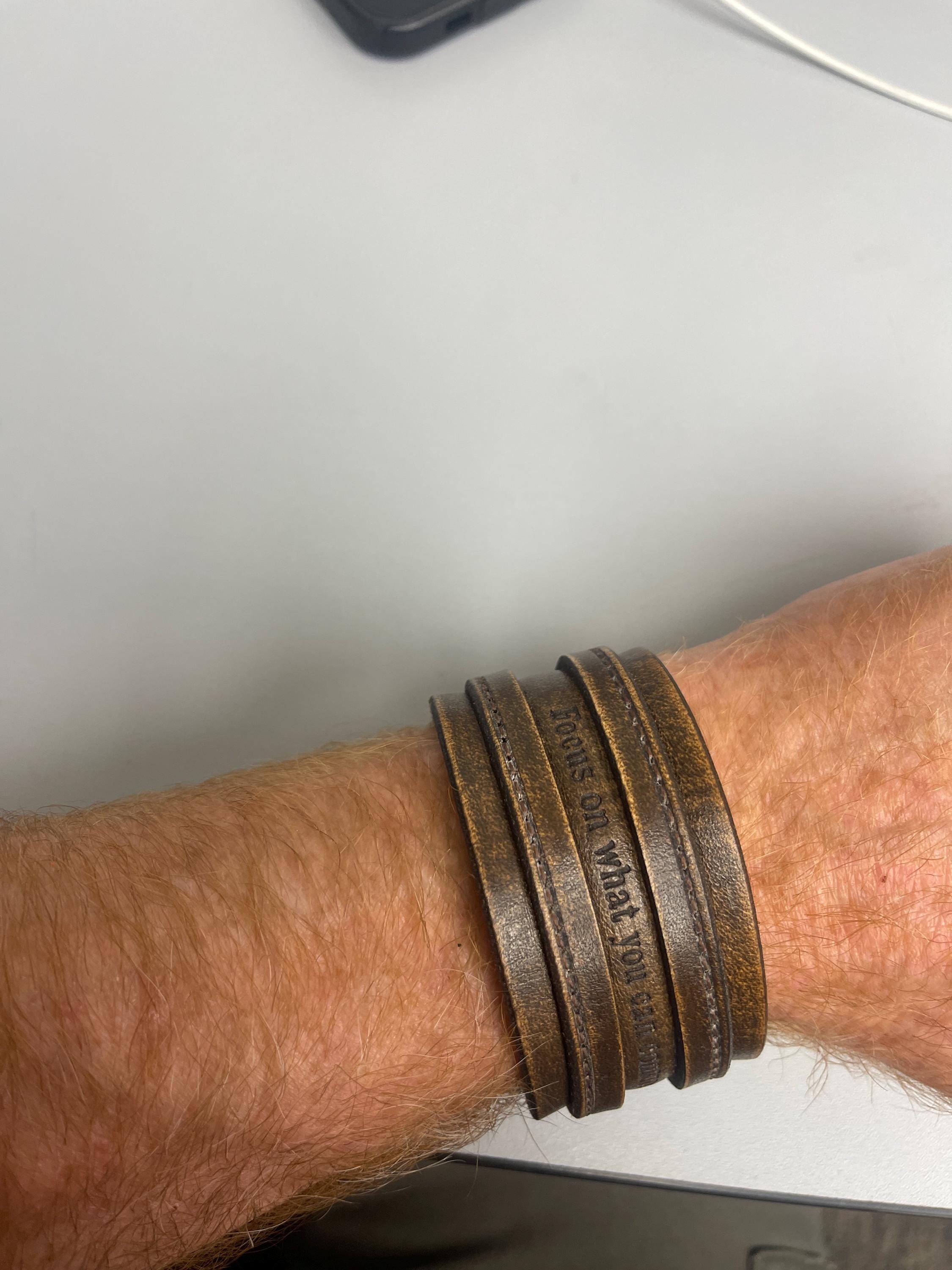 I just want to say, "wow." This bracelet was so high quality and so well done, I can't say enough how pleased I am with these artists. I bought this for my nephew for Christmas, who couldn't stop looking at it and smelling it (he loved the leather smell, he said). According to my sister, he continues to wear it daily. Thank you so much! So happy with this bracelet and will be back!